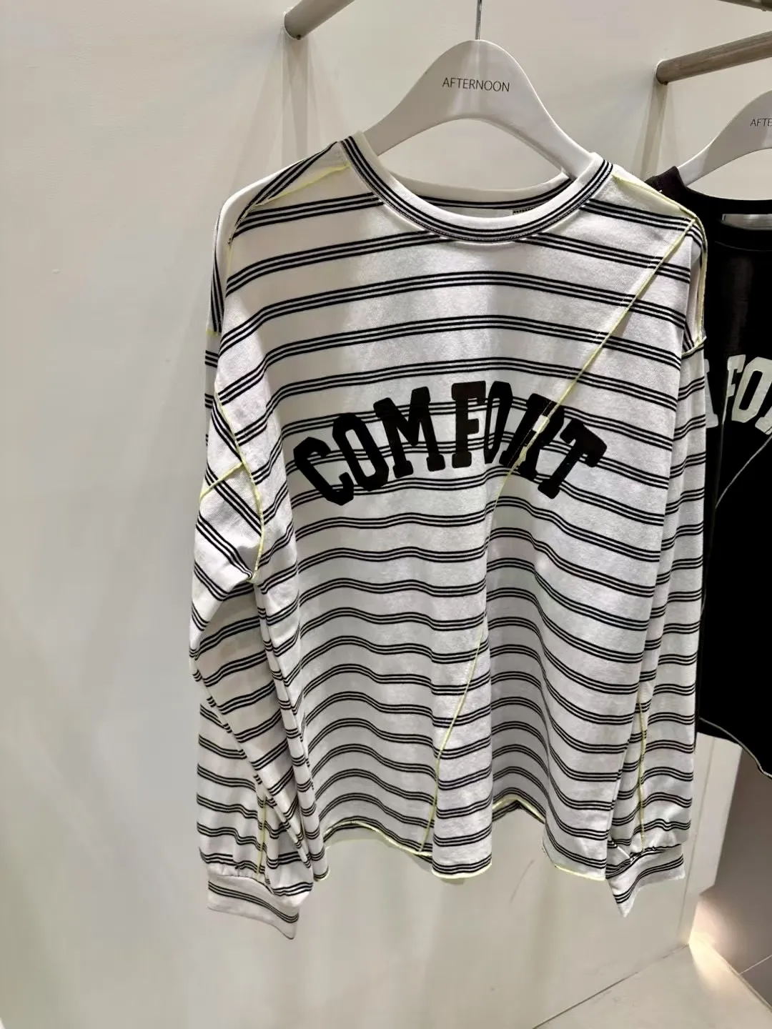 正韓長T 舒適,也可以很有型。 COMFORT長袖Tee,三款配色,簡約不單調。 從白色、條紋到經典黑,不論是日常出門還是居家休閒,都能穿出你的自在風格。 選一件,讓舒適成為你的日常態度。 春季穿搭剛剛好 shiny正韓嚴選 顏色:白色/條紋/深灰 尺寸:F 胸約52/肩約66/長約66/袖長約57
