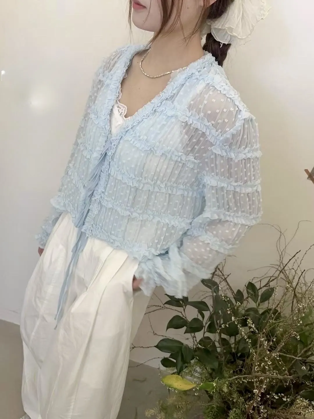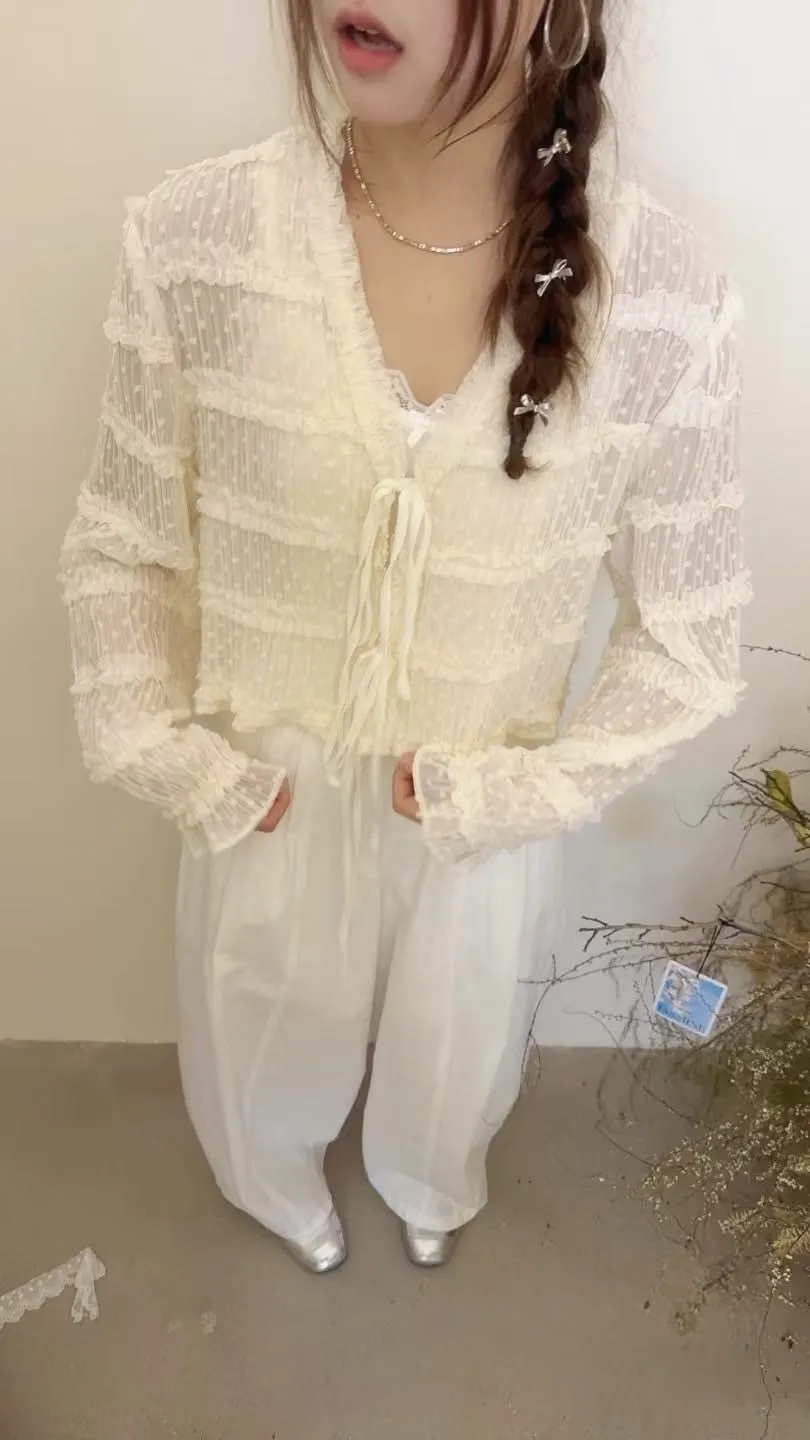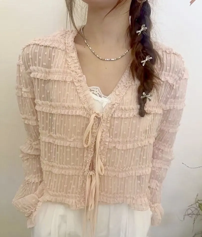 🎈韓系小罩衫🇰🇷🇰🇷正韓 浪漫氛圍感爆棚的小罩衫來啦~ 層層壓摺紗 視覺輕盈又仙氣,穿上立刻甜美升級! 綁帶設計可自由調整,內搭背心、短版上衣 都超好看,真的是美翻了! 🎈shiny嚴選 🇰🇷正韓 韓系女孩衣櫃必收單品!